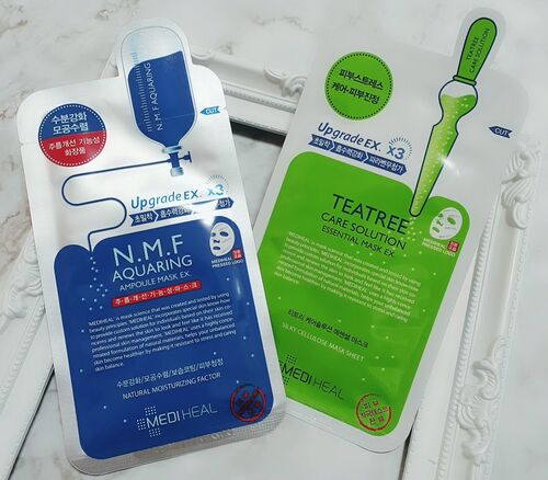 メディヒールのシートマスクの中でも特に人気の2種類を比較してみました❣️《左》メディヒール N.M.F アクアリング アンプル マスク EX 《右》メディヒール ティーツリー ケア ソルーション エッセンシャル マスク EXまずは、機能の違いです。 NMF保湿・収斂・…